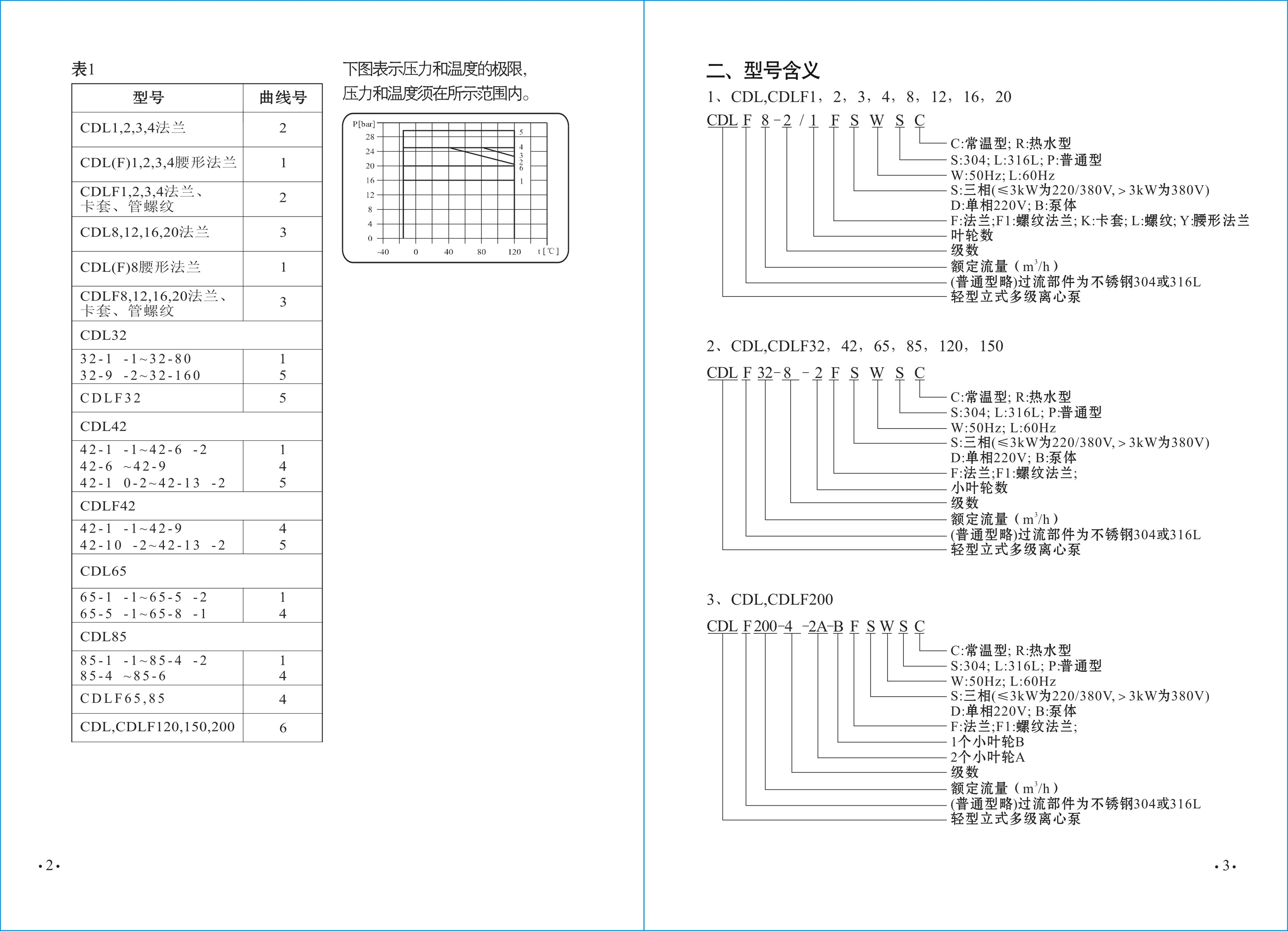 介質(zhì),適用于不同溫度、流量和壓力范圍,CDL適用于無腐蝕性液體,CDLF適用于輕度腐蝕性液體